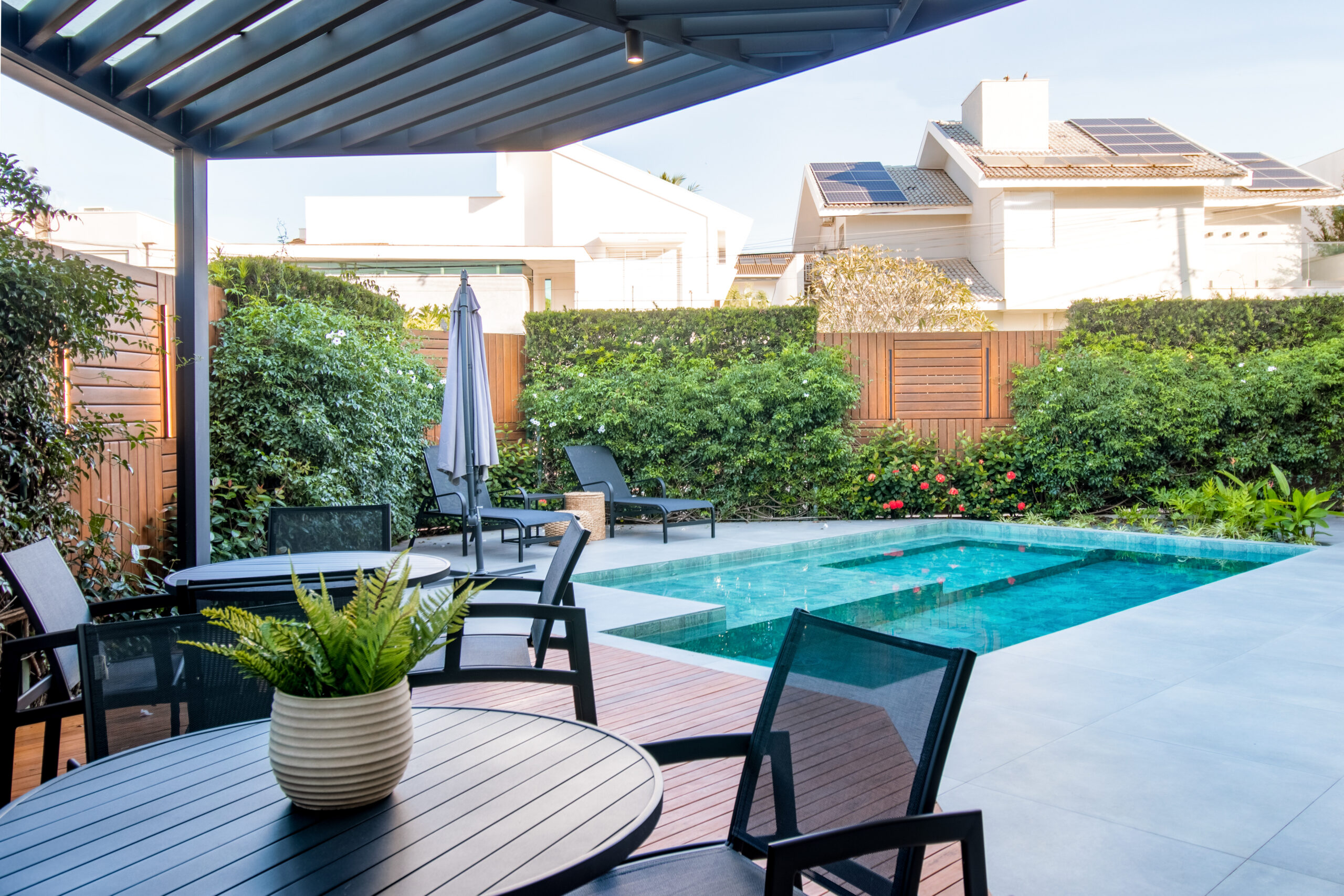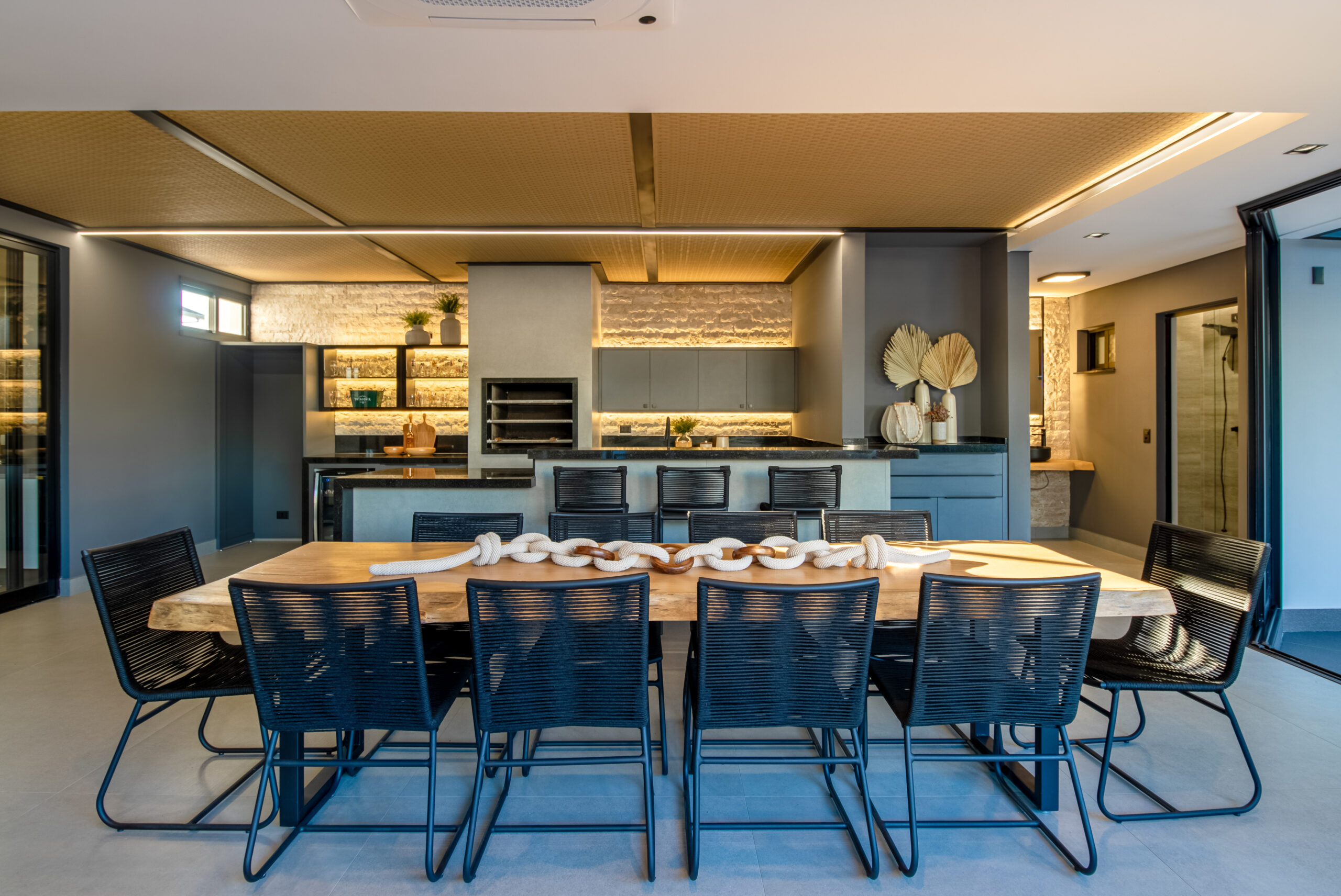 Na Casa Flora, a natureza foi a grande inspiração para a reforma da área gourmet, onde o verde da vegetação se conecta de forma harmônica ao novo design sofisticado. A piscina, repaginada, se integra ao espaço e amplia a sensação de frescor e leveza.