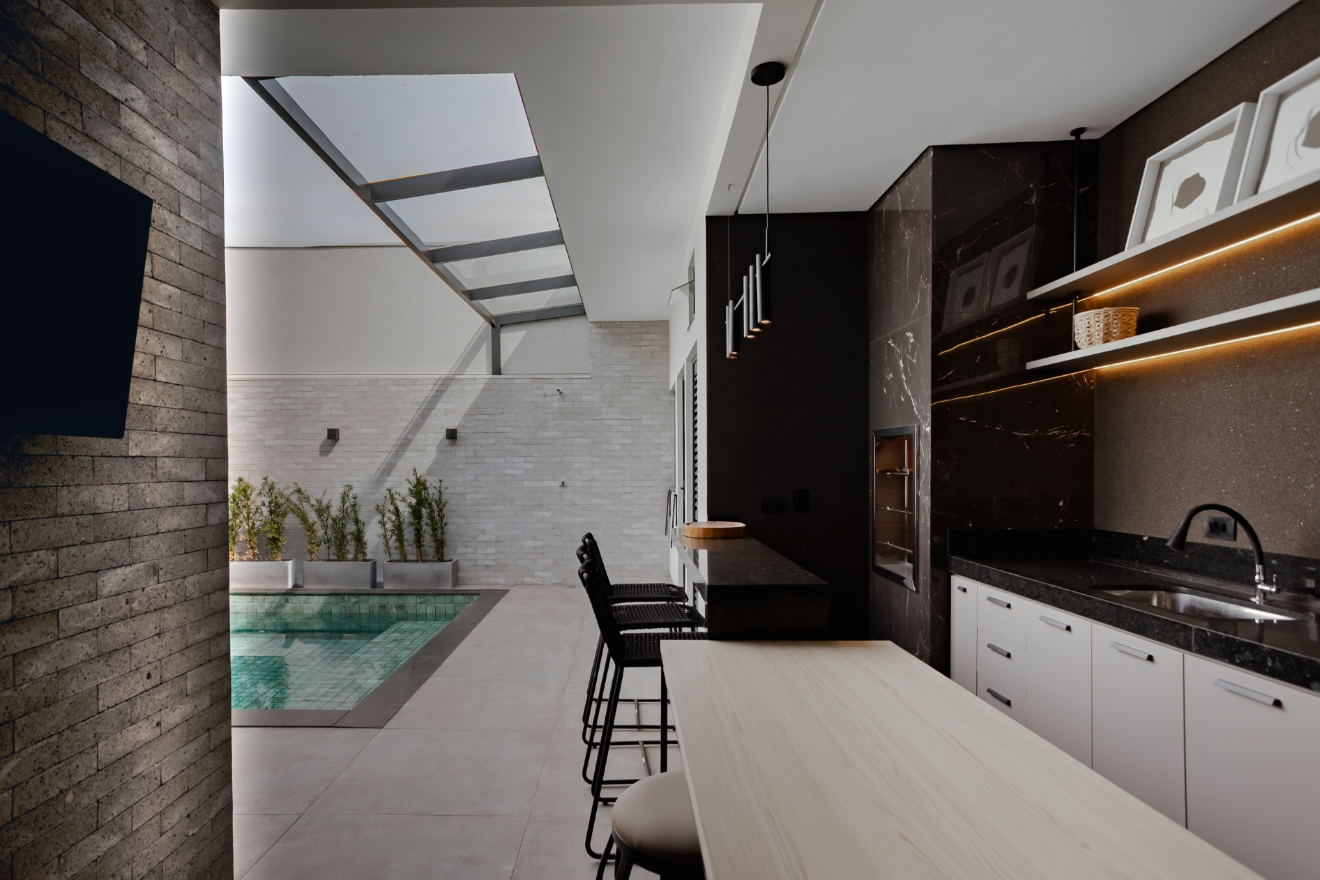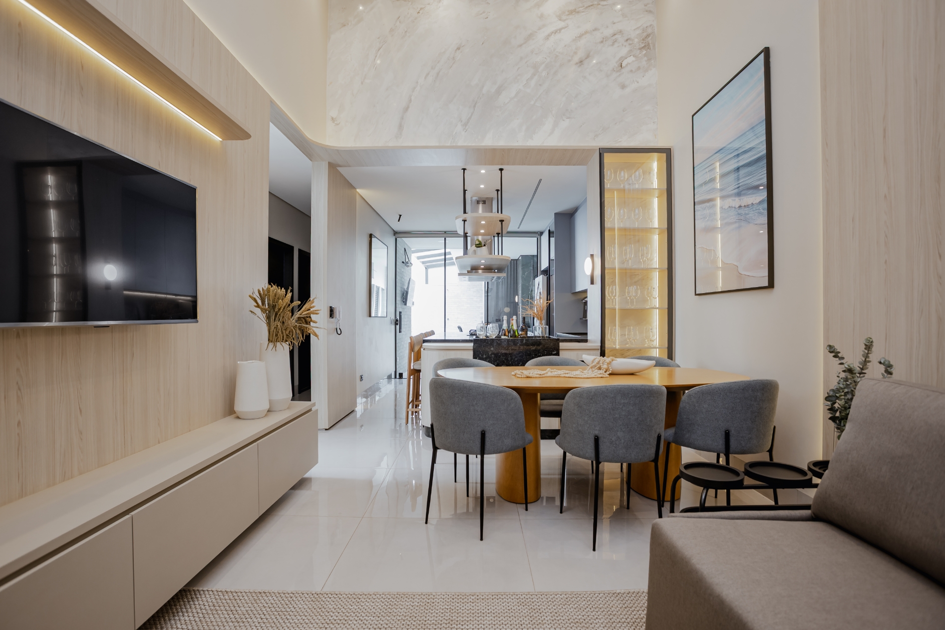 Pensada para receber bem, reunir amigos e valorizar bons encontros, a Casa Prosa nasce como um espaço de convivência, conversa e leveza. Moderna e alegre, a residência equilibra tons neutros com toques de cor na medida certa, tornando os ambientes harmônicos, acolhedores e cheios de vida.